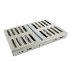 Stainless steel cassette holds up to 10 instruments for sterilization and instrument management.