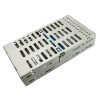 Stainless steel cassette holds up to 18 instruments for sterilization and instrument management.