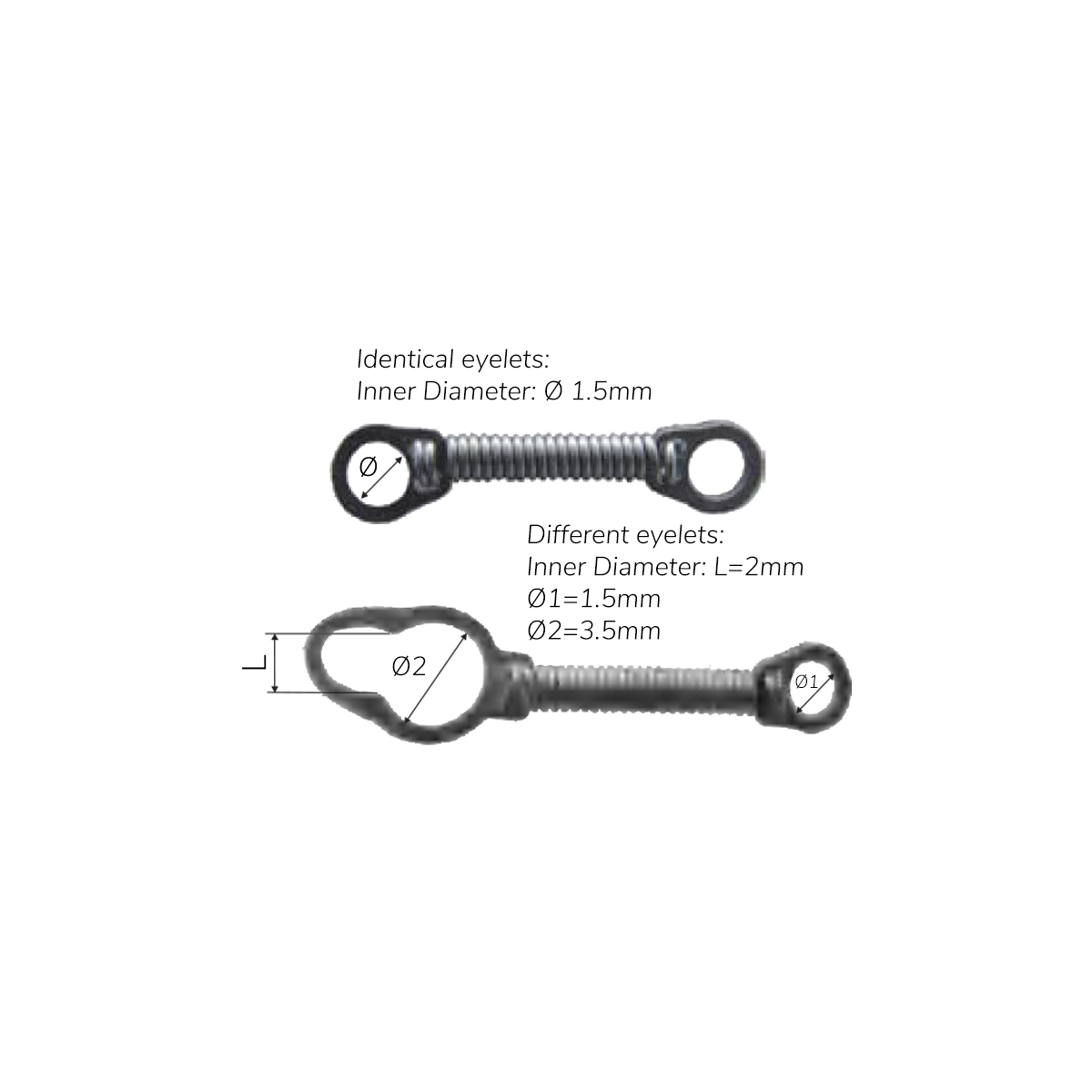 • Refer to diagram for different eyelet sizing