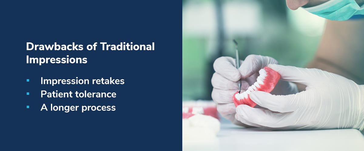 Traditional impressions also have disadvantages, including: